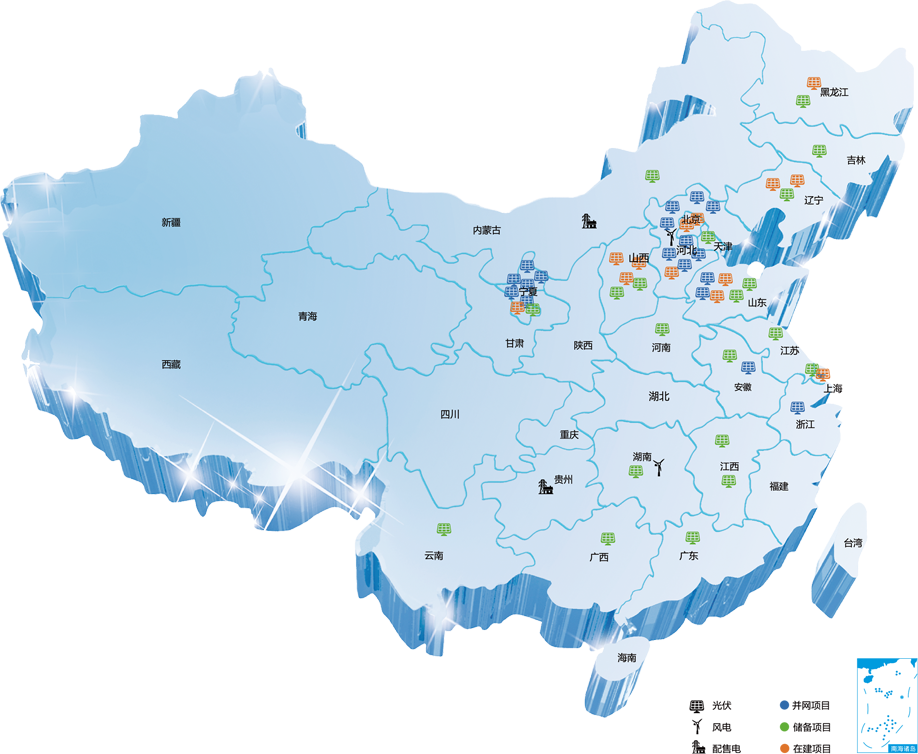 目前业务聚焦新能源项目的开发、投资、建设及运维,并已在全国10多个省市筛选储备光伏发电项目近3GW,其中已并网容量近700MW。未来我们将以“专业化、资本化、多元化”的发展思路为指导,致力将公司打造成为国家级新能源投资平台。
